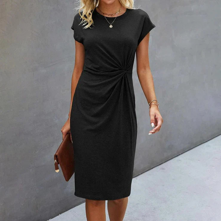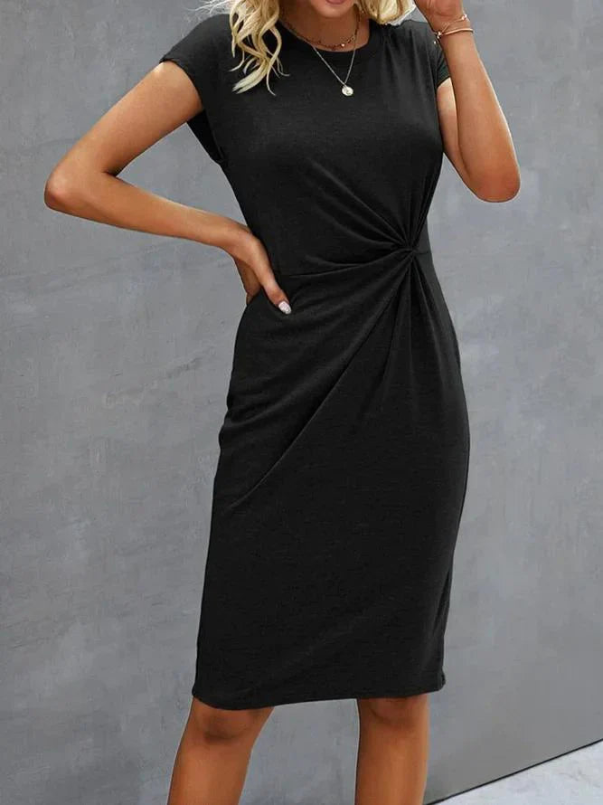 Abito a turni con scollo a pallina e vita annodata sul retro