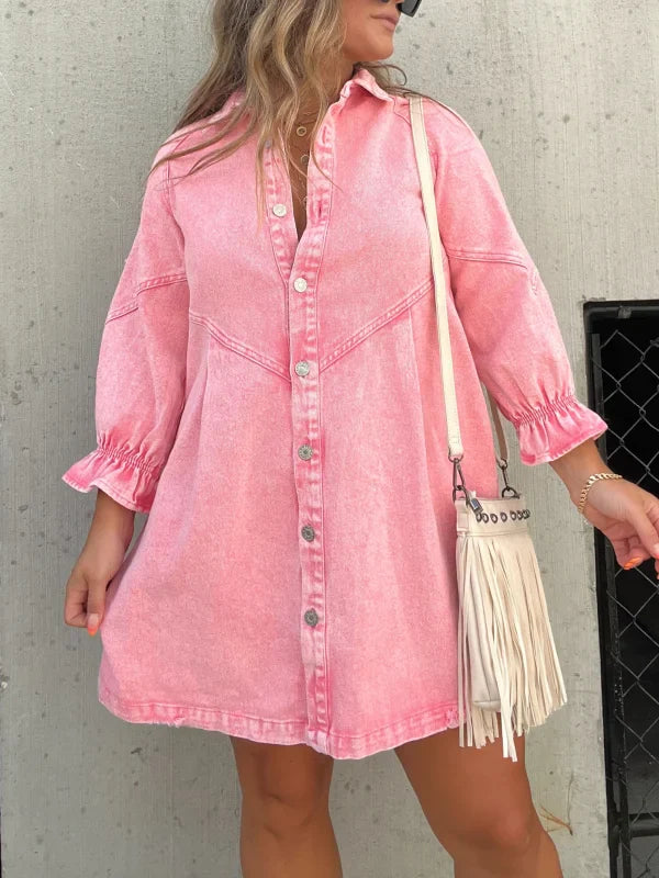 Abbraccia un tocco di fascino vintage con il nostro abito camicia in denim rosa. Realizzato in tessuto denim di prima qualità, questo abito offre una vestibilità comoda ed elegante. La classica silhouette dell'abito camicia è completata da maniche lunghe per maggiore calore e versatilità. La delicata tonalità rosa aggiunge un tocco femminile, rendendolo perfetto sia per le occasioni casual che per quelle eleganti. Abbinalo a delle sneakers per un look rilassato o rendilo più elegante con dei tacchi e gioielli vistosi.