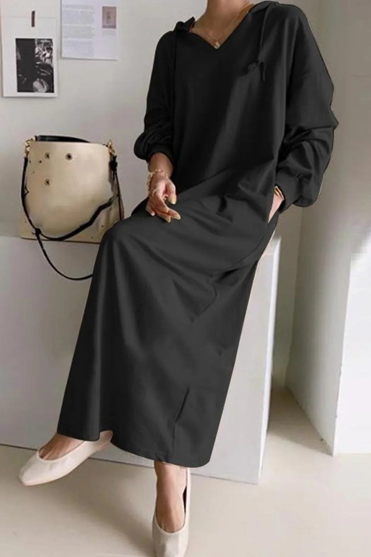 Abito con cappuccio e coulisse con scollo a V