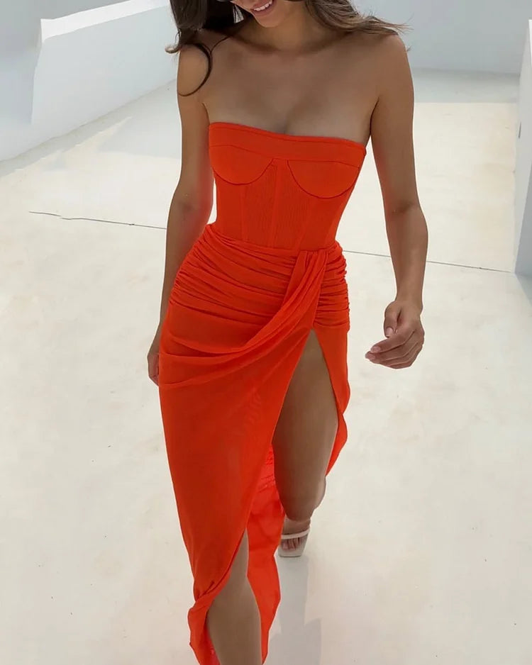 Abbraccia l'eleganza bohémien con questo splendido abito con spacco superiore a tubino a spina di pesce. L'esclusivo motivo a spina di pesce aggiunge un tocco di consistenza e interesse visivo, mentre lo spacco aggiunge un tocco di sensualità. Il design della parte superiore a tubo accentua le tue spalle, creando una silhouette lusinghiera. Perfetto per una serata estiva o un festival, questo vestito farà sicuramente girare la testa. Disponibile in una gamma di dimensioni e colori per adattarsi al tuo stile personale.