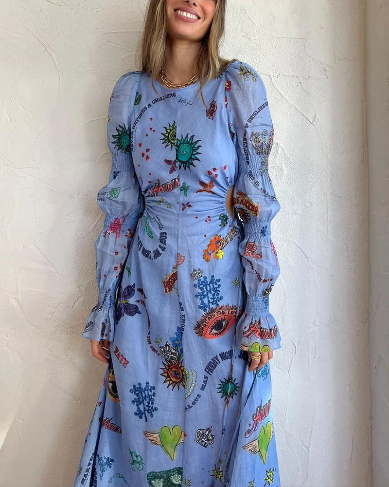 Concediti un'eleganza senza tempo con questo squisito abito lungo caratterizzato da vita scavata e maniche a lanterna dipinte su misura. Realizzato con materiali di prima qualità, questo vestito offre una perfetta combinazione di comfort e stile. La vita scavata accentua la tua figura, mentre le maniche a lanterna dipinte su misura aggiungono un tocco di stile artistico. Perfetto per occasioni speciali o eventi serali, questo vestito farà sicuramente girare la testa.