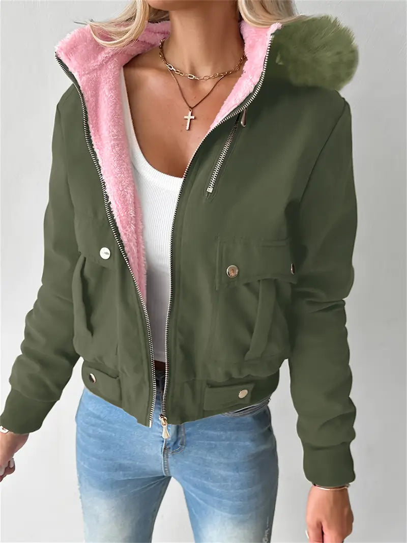 Rimanete caldi ed eleganti con la giacca con cappuccio foderata in pile, progettata per il massimo comfort quando fa freddo. Dotata di una morbida fodera in pile isolante, questa giacca vi terrà al caldo nelle giornate fredde, mentre il resistente guscio esterno protegge dal vento e dalla pioggia leggera. Il cappuccio regolabile offre una copertura extra e la cerniera frontale consente una facile stratificazione, rendendola perfetta sia per le avventure all'aperto che per l'abbigliamento quotidiano.