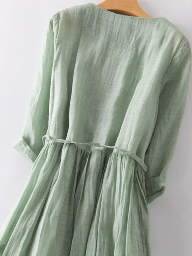 Concediti un'eleganza senza sforzo con l'abito Amalie. Realizzato in una lussuosa miscela di morbido cotone e lino traspirante, questo abito offre comfort e stile senza pari. Caratterizzato da un'affascinante serie di delicati volant, aggiunge un tocco di femminilità al tuo look. Perfetto per ogni occasione, da una giornata ventosa in spiaggia a una festa in giardino, questo versatile abito è un must per il tuo guardaroba. Disponibile in una gamma di taglie per soddisfare ogni tipo di corpo e in una varietà di colori per adattarsi al tuo stile personale, l'abito Amalie assicura una vestibilità perfetta e un look impeccabile. Vivi l'epitome del comfort e dello stile con questo capo eccezionale.