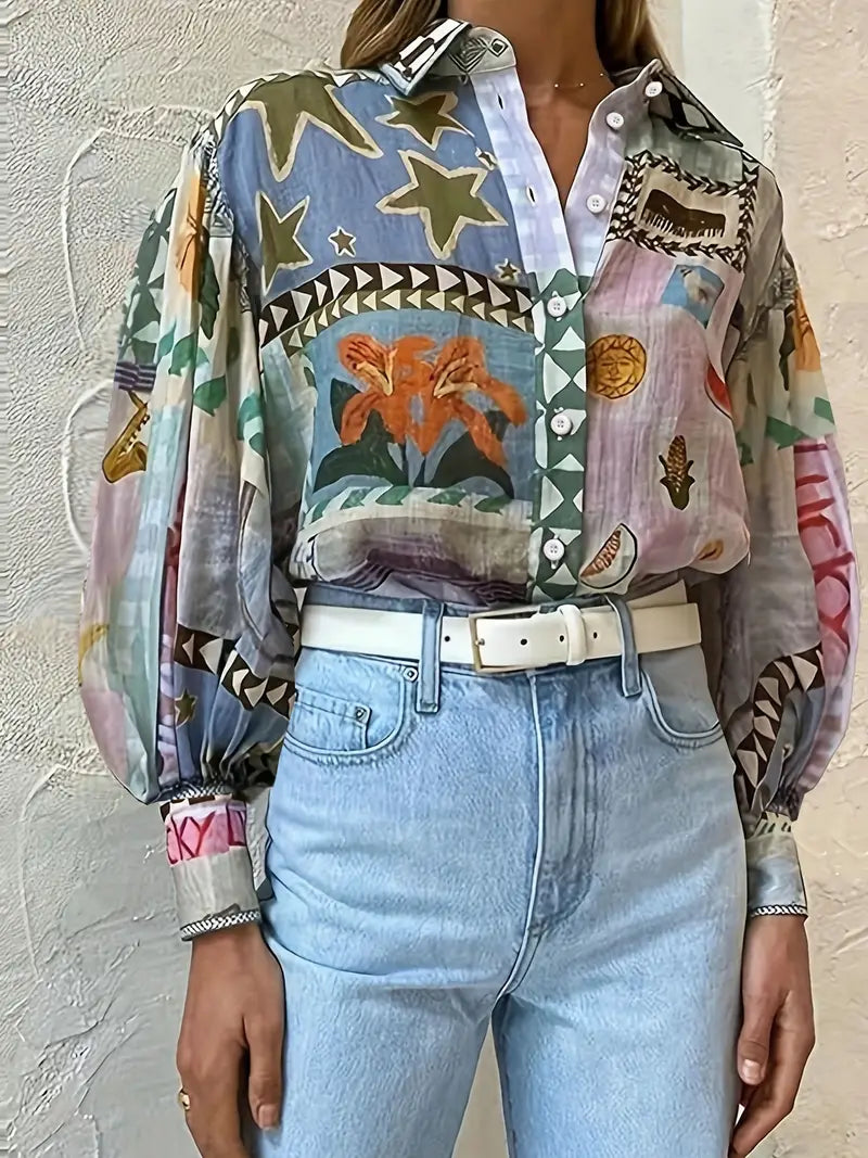 Diana - Elegante camicia da donna con bottoni e stampa