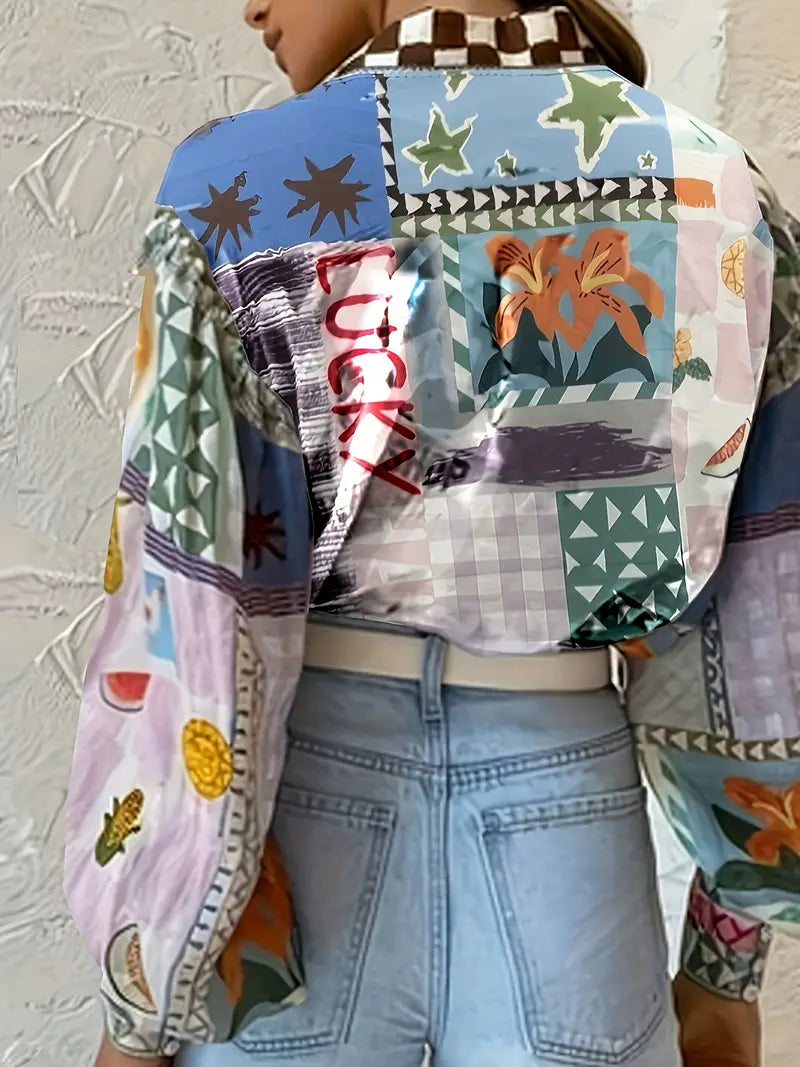 Questa elegante camicia abbottonata da donna offre un look sofisticato ed elegante per ogni occasione. È realizzata in tessuto morbido e traspirante che assicura comfort mantenendo un look sofisticato. La camicia presenta una classica chiusura a bottoni e un colletto elegante, rendendola adatta sia per occasioni casual che professionali. La stampa audace aggiunge un tocco di personalità e aggiorna senza sforzo il tuo guardaroba con un'estetica senza tempo ma moderna.