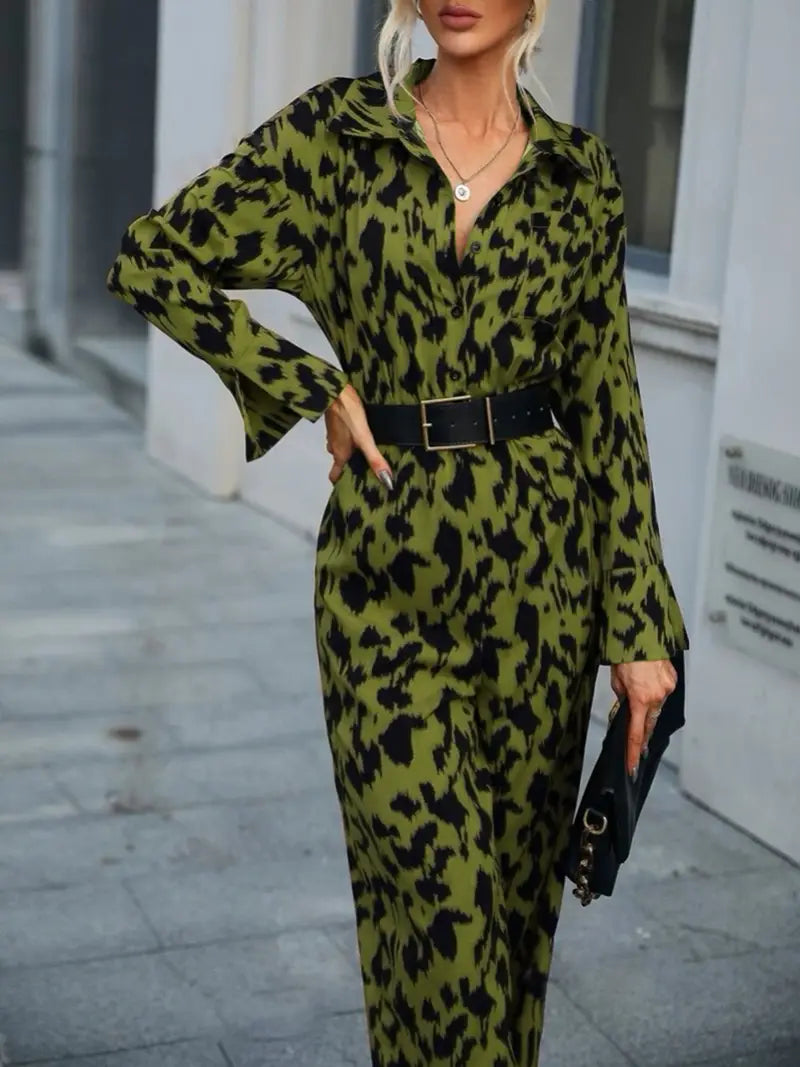Eliza - Tuta elegante a maniche lunghe con stampa leopardata