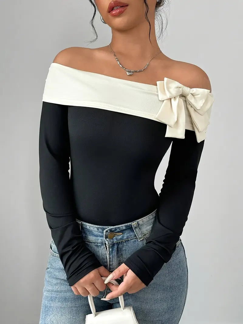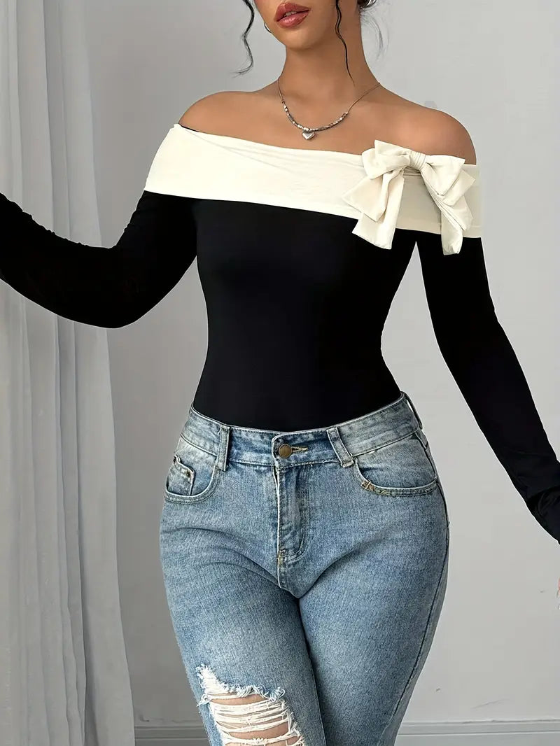 Elizabeth - Body elegante a spalle scoperte con dettaglio fiocco