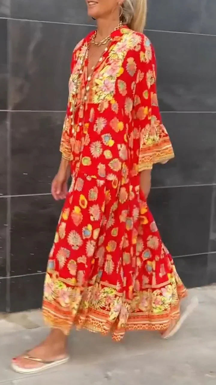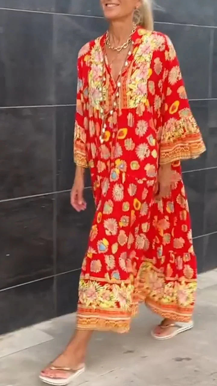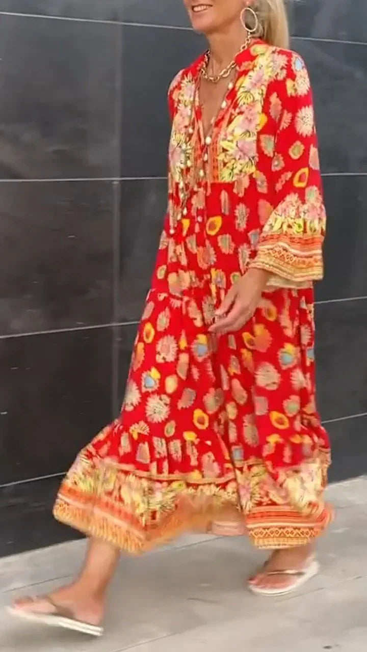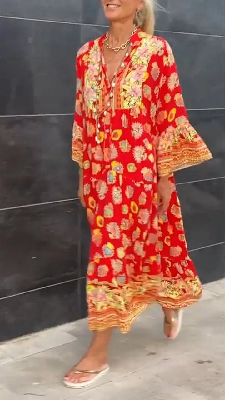 Gisela - Abito a maniche lunghe con scollo a V e stampa retrò