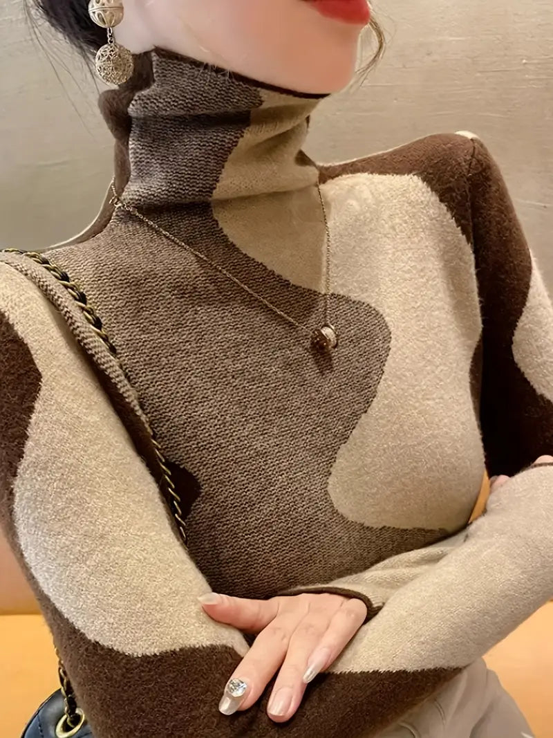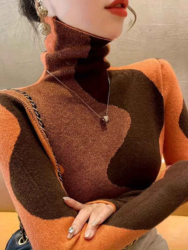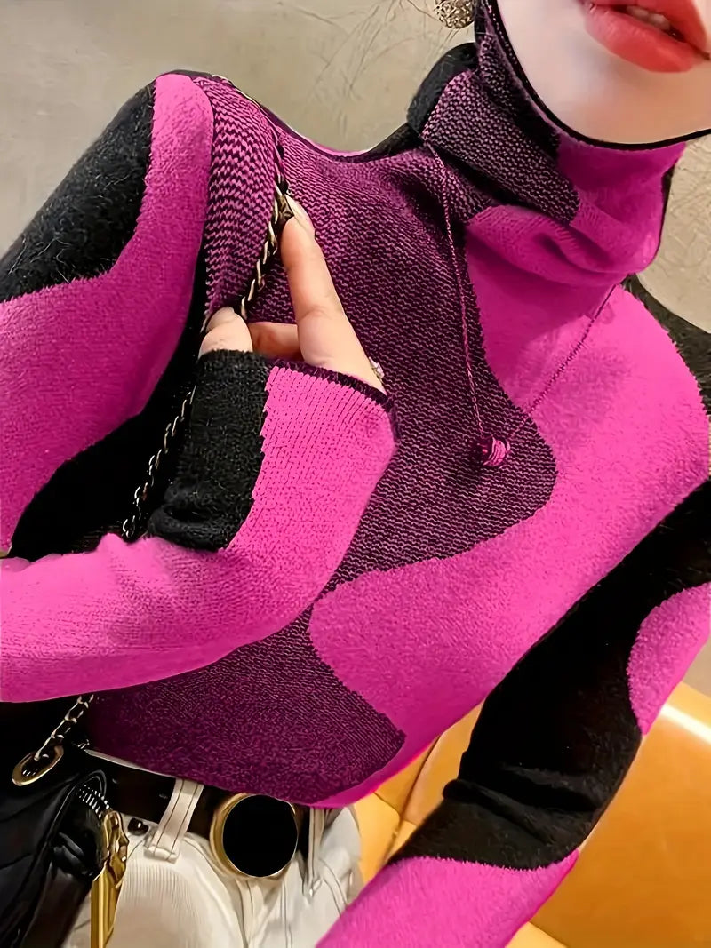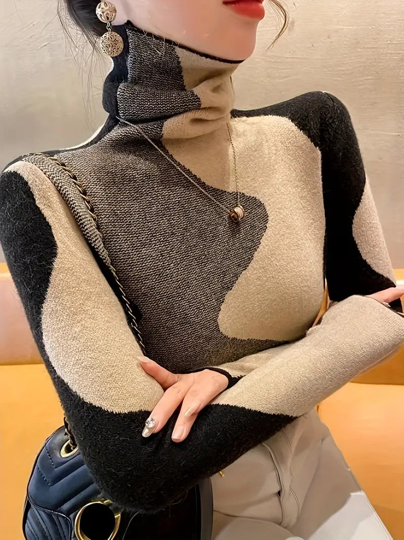 Ravviva il tuo guardaroba con il maglione a collo alto Color Block, un mix perfetto di stile e comfort. Con il suo design audace color block, questo maglione combina tonalità contrastanti per un look moderno e accattivante. Il morbido dolcevita offre calore extra e protezione dal freddo, mentre il tessuto morbido e traspirante assicura comfort per tutto il giorno. La vestibilità ampia e le maniche lunghe lo rendono un capo versatile, perfetto da indossare sopra jeans, gonne o leggings.