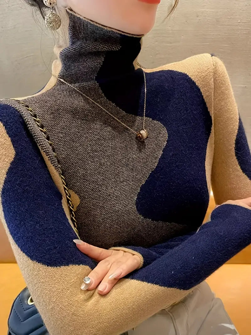 Helene - Maglione dolcevita color block