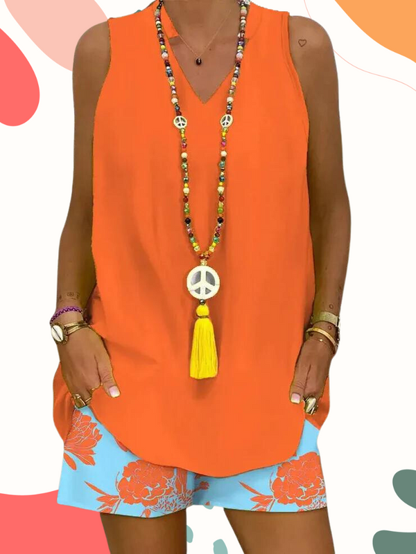 Il due pezzi senza maniche è un insieme versatile che combina perfettamente raffinatezza e audacia. Questo due pezzi vi permette di affrontare qualsiasi sfida con la sicurezza che deriva da un outfit elegante e lusinghiero. Il design senza maniche è la massima espressione dell'estate e vi mantiene fresche e comode per tutto il giorno. La fantasia aggiunge un tocco di mistero al vostro look e vi farà sicuramente notare ovunque andiate. La scollatura a V aggiunge un tocco di femminilità all'outfit e migliora il look complessivo.