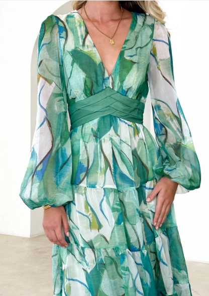 Eleganza e comfort in un unico capo: il maxi abito Lisa con scollo a V è la combinazione perfetta di stile e comodità. Il suo design fluido ed etereo con scollo a V, vita stretta e maniche lunghe vi farà sentire eleganti e sicure di voi stesse in qualsiasi occasione.