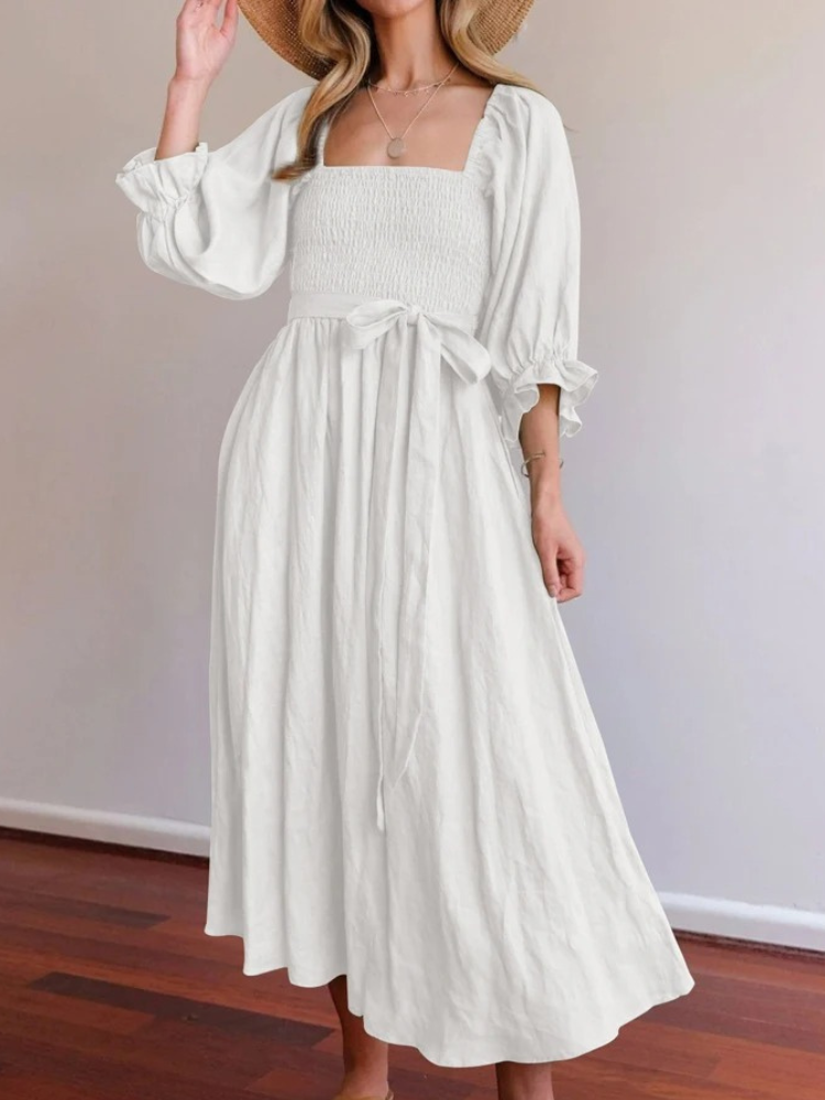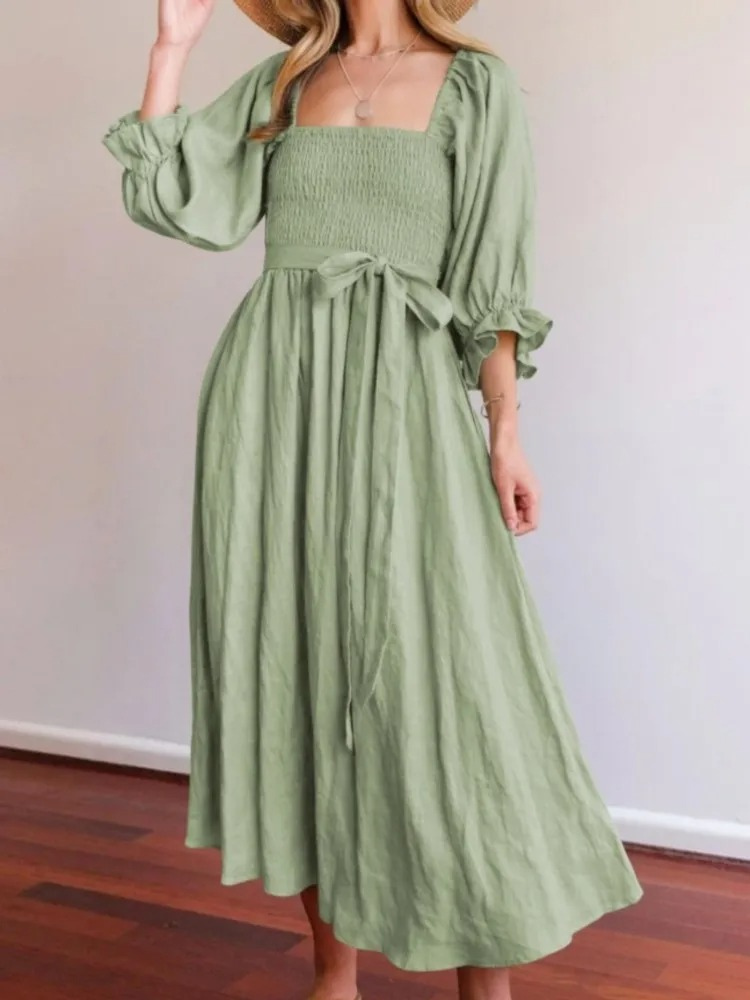 Liza - Elegante abito con maniche a sbuffo, volant e cintura regolabile