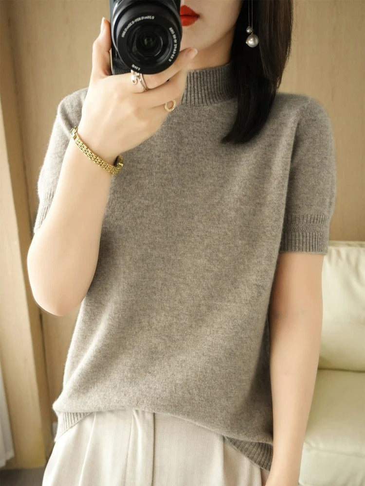 Margaret - Maglione basico lavorato a maglia con maniche corte
