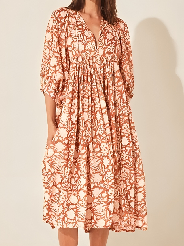Mercy - Abito casual floreale con maniche a campana e vestibilità ampia