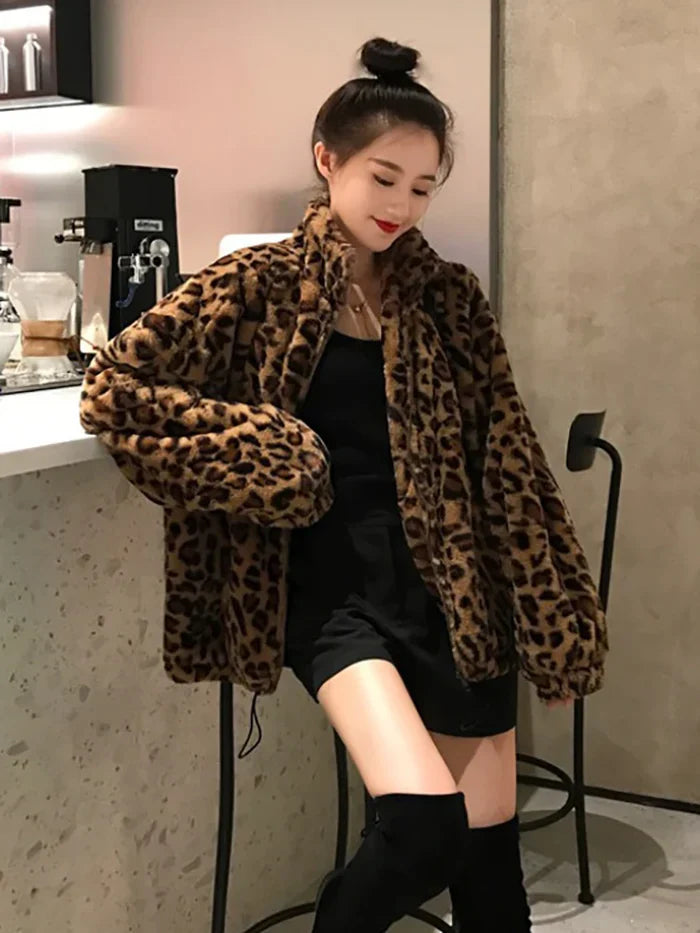Resta al caldo e alla moda con la giacca soffice con stampa leopardata da donna. Realizzata in materiale ultra morbido e soffice, la giacca offre una vestibilità comoda e aderente, perfetta per le giornate fredde. L'audace stampa leopardata le conferisce un tocco selvaggio e alla moda, rendendola un capo d'effetto che valorizzerà qualsiasi outfit casual. Con la sua vestibilità rilassata, le maniche lunghe e la consistenza soffice, questa giacca offre sia comfort che stile per il tuo look quotidiano.