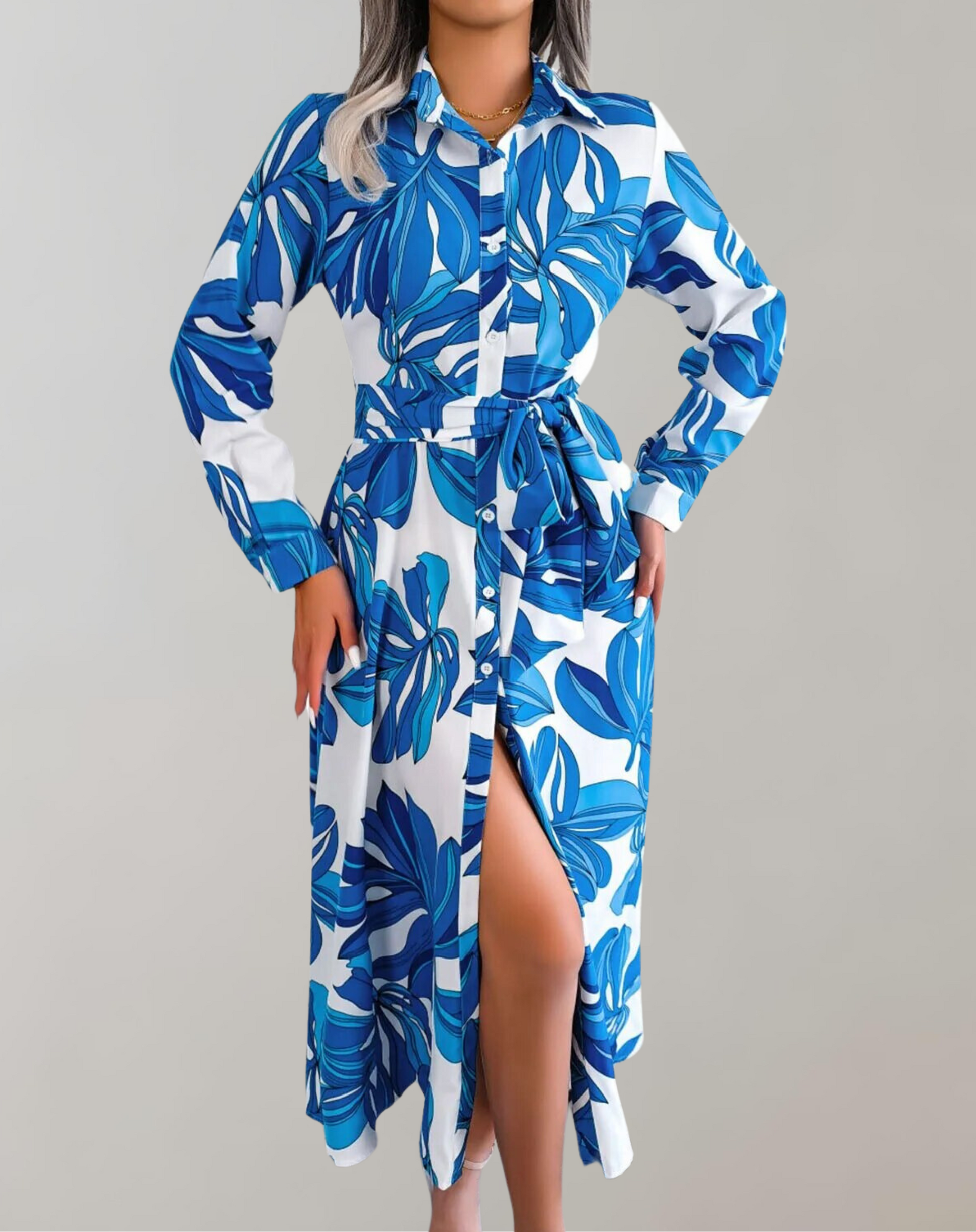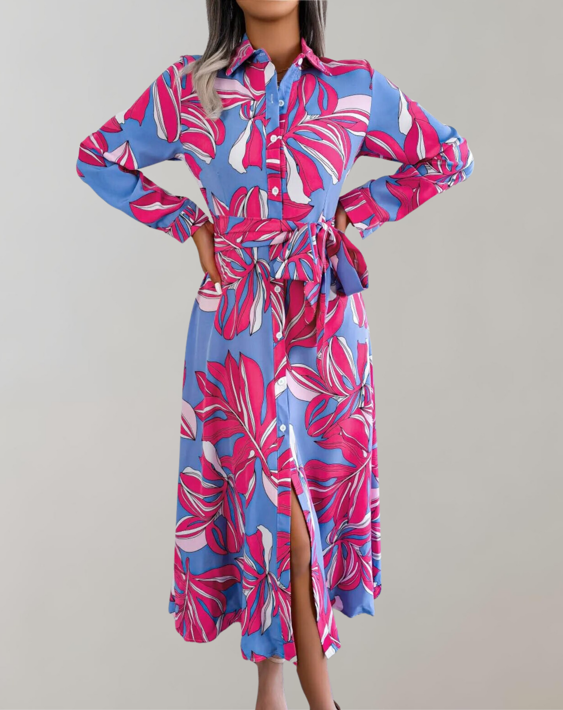 Rhosyn - Elegante abito camicia a maniche lunghe con cintura