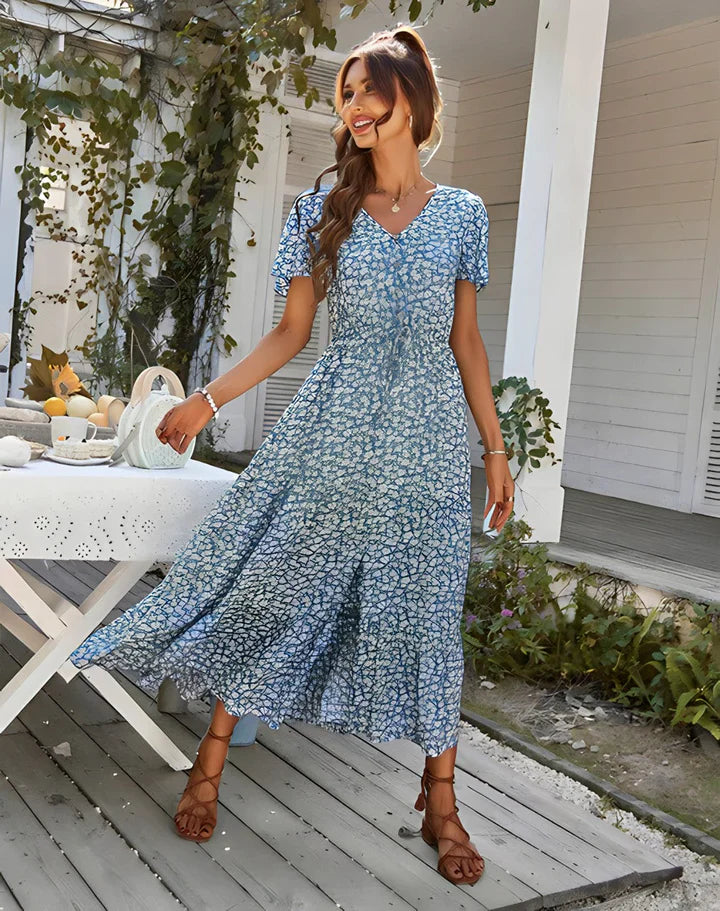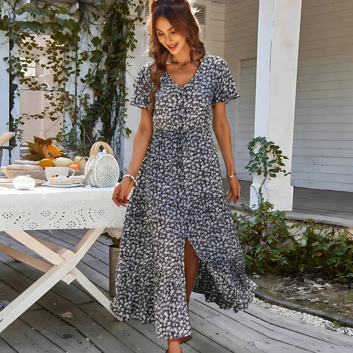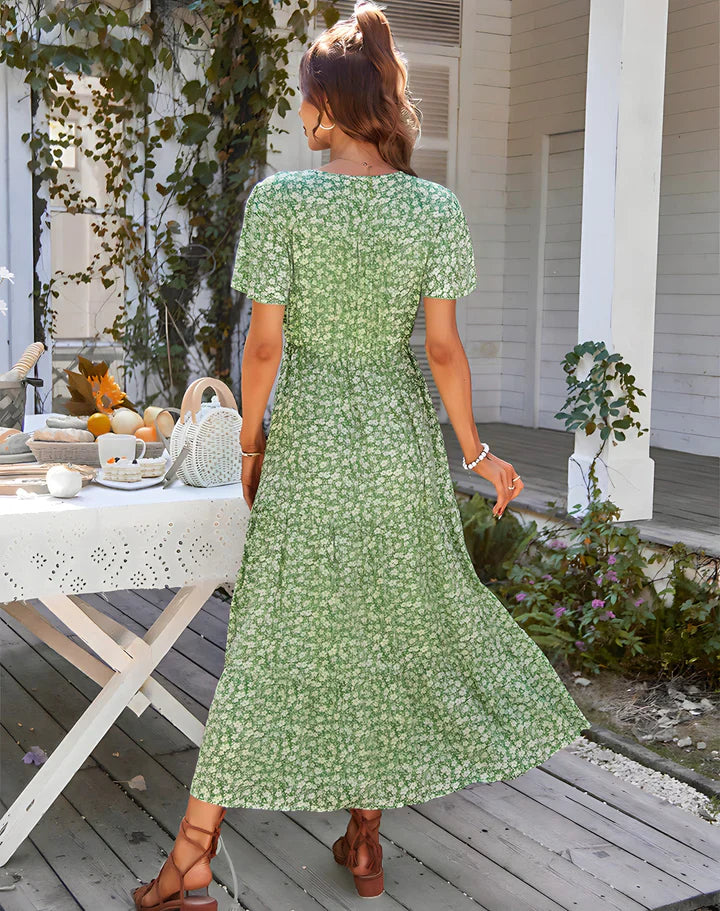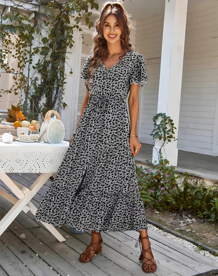 Quando il sole caldo bacia la vostra pelle e la brezza soffia nell'aria, questo abito eleverà senza sforzo il vostro stile in ogni occasione estiva. Che stiate passeggiando sulla spiaggia, partecipando a una festa in giardino o semplicemente godendovi una giornata di sole, Sandra è il compagno perfetto per sentirsi una vera icona della moda.