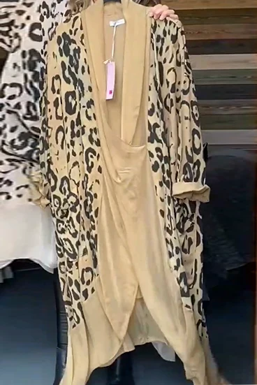 Top casual a maniche lunghe con stampa leopardata e patchwork