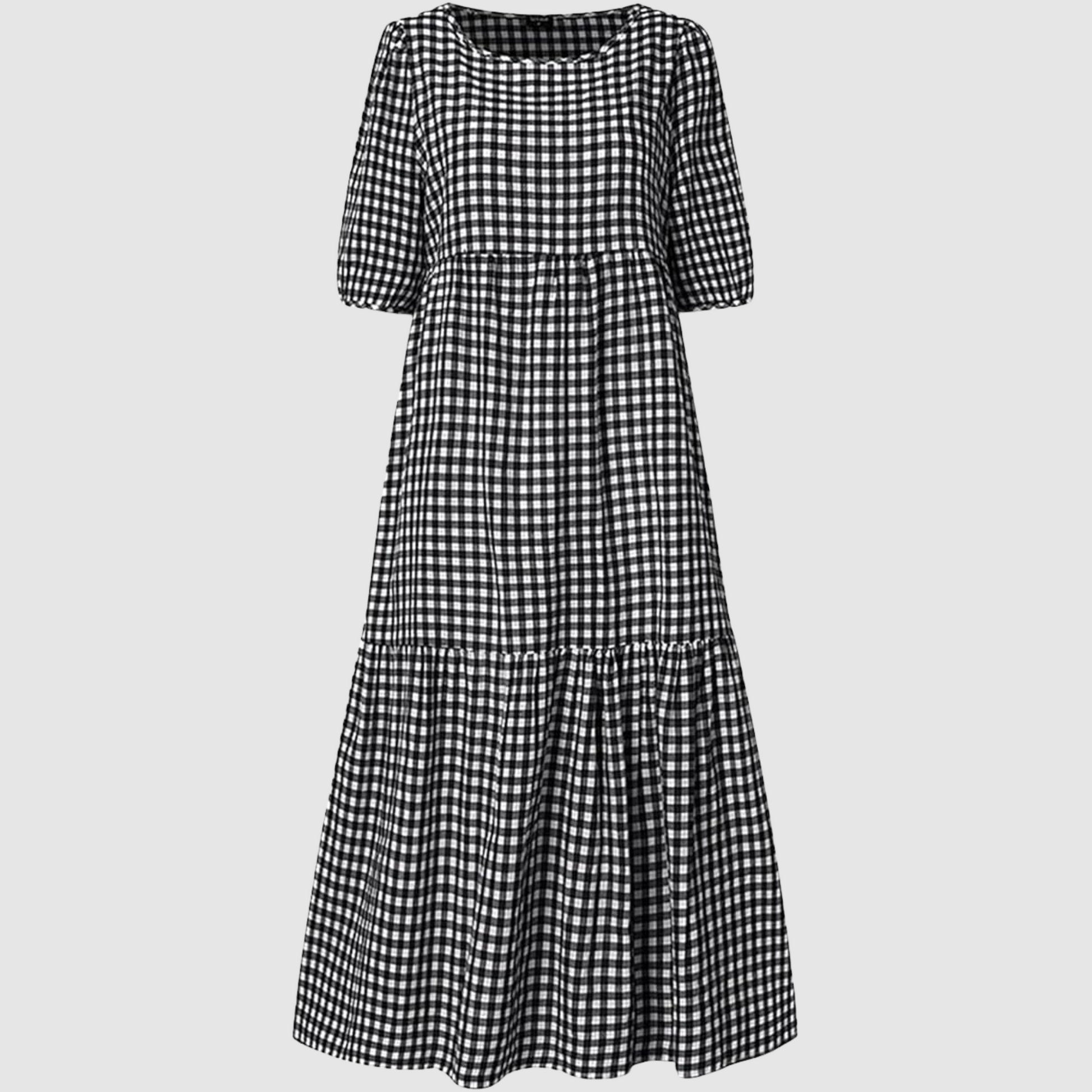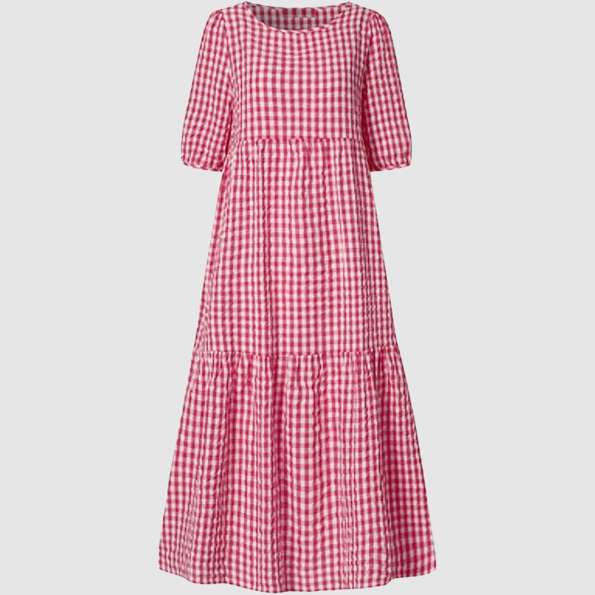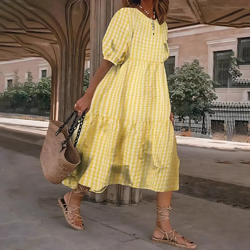 TAbbraccia lo spirito spensierato dell'estate con questo abito a quadri oversize, disinvoltamente chic. Realizzato in tessuto morbido e arioso, offre un comfort senza precedenti emanando un'atmosfera rilassata e bohémien. Il motivo a quadretti aggiunge un tocco giocoso, rendendolo perfetto per rilassarsi a bordo piscina o per giornate informali in spiaggia. Progettato per valorizzare tutti i tipi di corporatura, questo vestito è l'essenziale per il tuo guardaroba da vacanza.