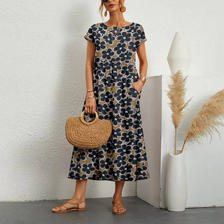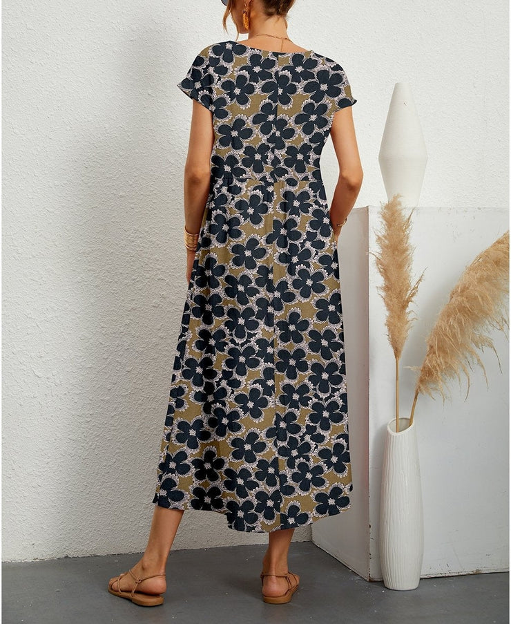 Vestito midi a maniche corte con stampa floreale moderna