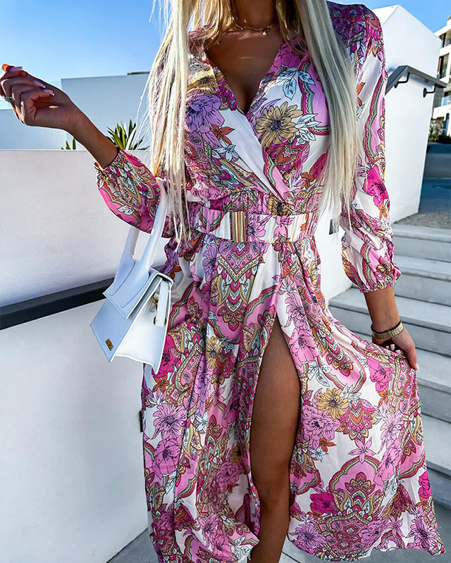 Vestito midi primaverile a maniche lunghe con motivo floreale Paisley