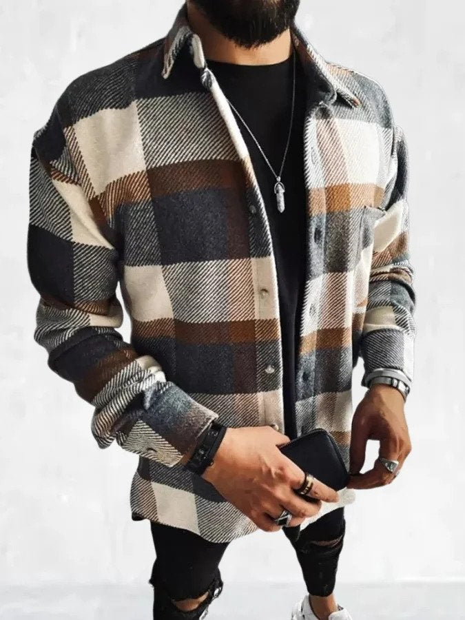 Victor – Giacca Casual a Maniche Lunghe con Motivo a Quadri alla Moda da uomo